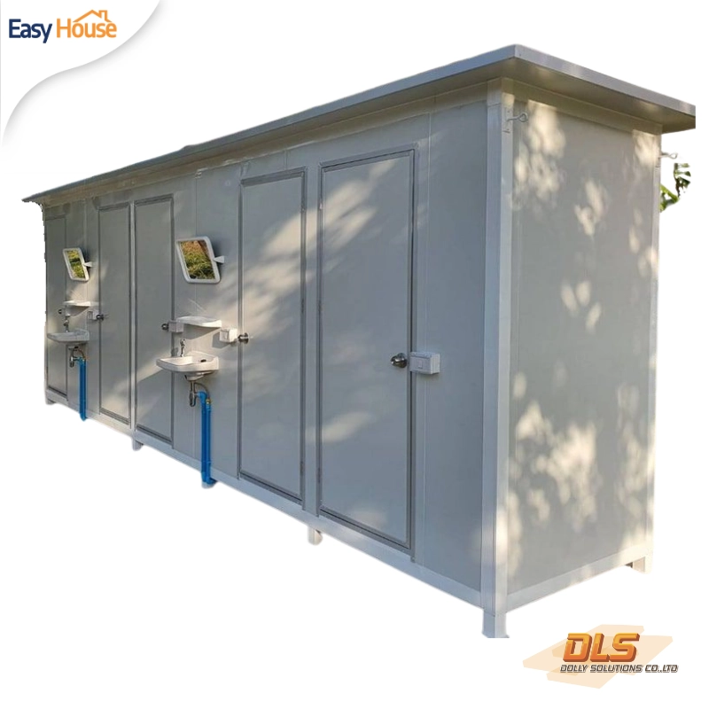 ห้องน้ำ TL08-1212 ขนาด 1.27×1.27 M x5 ตู้, โครงสร้างเหล็ก, วัสดุผนังแผ่น EPS Panel 50mm (ISO Wall), มีอ่างล้างหน้าพลาสติก + กระจก ห้องละ 1 ชุด